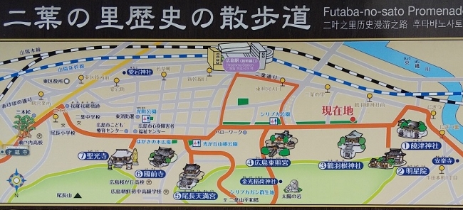 F 聖光寺 E 國前寺 D 尾長天満宮 C 広島東照宮 B 鶴羽根神社 A 明星院 @ 饒津神社