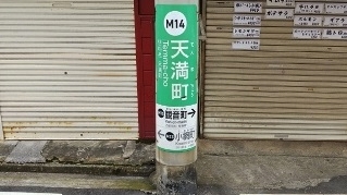 駅名標は 小網町 や 天満町 と同じく電柱に張り付けてある。