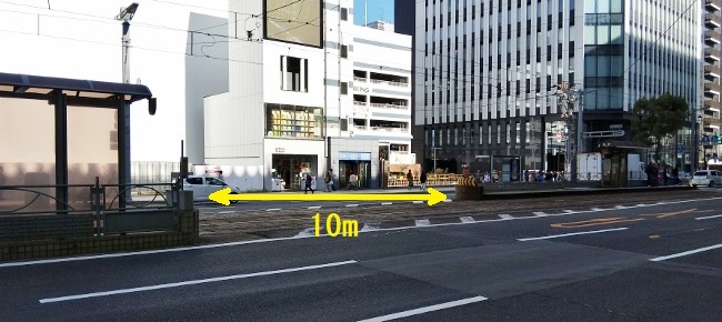昔、電停には紙屋町交差点に設けられていた横断歩道でも連絡していたが、地下街のシャレオ開業に伴い 交差点の横断歩道は 2001年(平成13年)4月廃止となる。