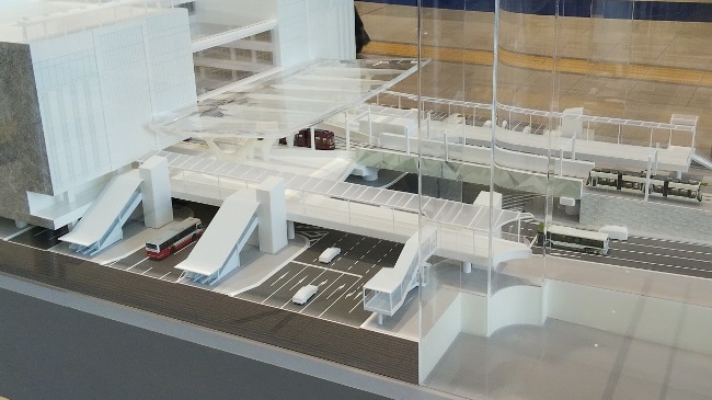 現在工事中のペデストリアンデッキ が模型のようになるらしい。