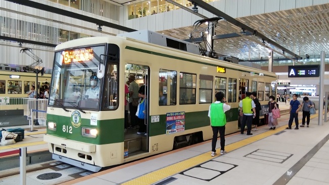 今日、広電 新広島駅へ行くと テレビのNHKがイベントを行っており、車両内の見学が行える。