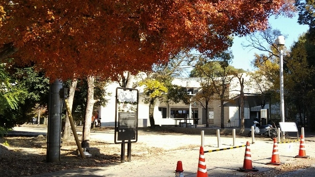 に比治山公園へ行った時、紅葉は まだ鮮やかでなかったが、今回は桜の葉が散って紅葉シーズンは終わっていた。 ただ、広場入口にある もみじ だけは紅葉してたので撮った。 バックに写っているのは