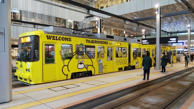 買い物帰りに広電 広島駅へ寄ってみると、初めて見るラッピング電車が止まっていた。 調べてみると昨日から運行しているようで、広島県観光の魅力度や満足度、好感度向上を目的とした「ひろくま観光インフォメーション電車」、通称「ひろくま電車」と呼ばれるそうだ。 新たなラッピング電車を見るとワクワクするな。