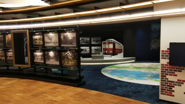 下写真・上段は フロア内にある広島市郷土資料館サテライトで、広島の歴史や文化を紹介し郷土愛を育む施設。 下写真・下段は エレベーター前のフロア入口。