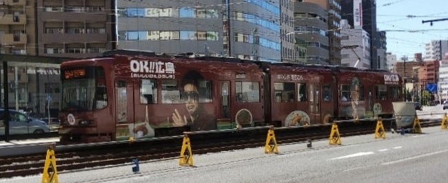 ・全幅 26.86 m、編成定員 140(着席70)人。 (2025/07/29 広電 旧広島駅 にて撮影) * | |